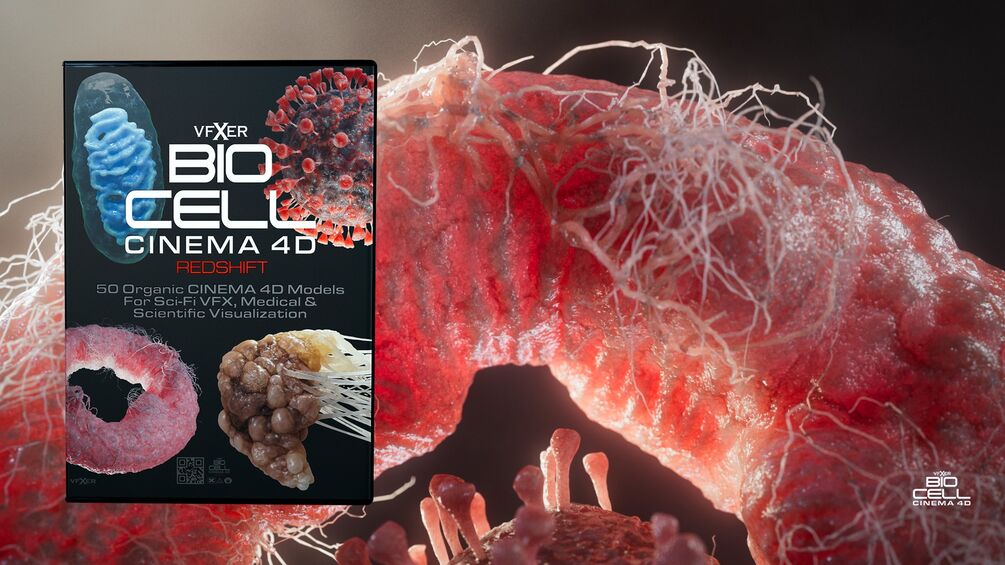 A collection of 50 exciting organic CINEMA 4D Redshift models for Sci-Fi VFX, medical & scientific visualization.